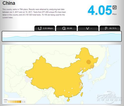 中國網絡下載速度為4.05Mbps,位列全球第79位
