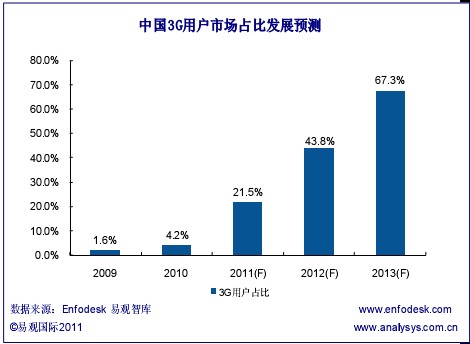 中國(guó)3G用戶市場(chǎng)占比發(fā)展預(yù)測(cè)