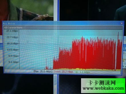 還記得我們最開始說的同時下載播放的四部720P高清電影么?本網(wǎng)編輯說大概過了15分鐘,這四部電影就全部下載完成了,平均不到4分鐘一部。對此,小編提出強烈質(zhì)疑,20Mbps的速度絕不可能實現(xiàn)這么快下載。經(jīng)過本網(wǎng)編輯前方核實,實測的最高速率達(dá)到了60Mbps。