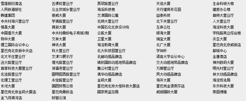 (3)覆蓋區域多:在北京,北京移動正在大力建設WLAN的信號覆蓋區域,很多高校、星巴克等咖啡廳、會議中心、酒店都有覆蓋,而且覆蓋區域還在不斷增加中,您可以登陸北京移動北京公司門戶網站查詢實施更新的覆蓋區域。您只要看到下面這樣的標識就說明這個地方可以用北京移動WLAN上網了。