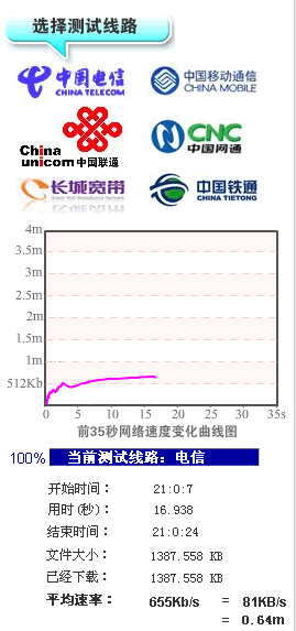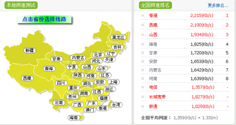 上圖看到,你可以選擇自己省份進去,在選擇線路測速。