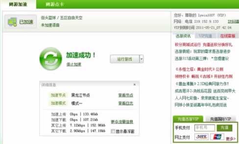 使用了迅游2010之后,游戲流暢了許多,運球,投藍,都讓人感覺十分舒暢。玩游戲時如果因為網速不佳影響體驗那是最不能忍受的,就算網速還過得去難道不想一快再快,馬上下載安裝迅游2010就能感受到如本地游戲一般的流暢。