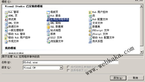添加完畢后,就可以看到Global.asax這個文件了,asp.net2003里在Global.asax.cs編寫的程序照搬到asp.net2005Global.asax這個文件里,即可!