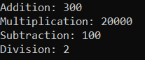 Math(200, 100, out Addition, out Multiplication, out Subtraction, out Division);