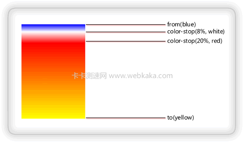 background: -webkit-gradient(linear, 0 0, 0 100%, from(blue), color-stop(8%, white), color-stop(20%,red),to(yellow));