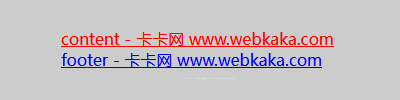 .footer a{color: red;}由于外層div的類.wrap已經定義了鏈接的顏色為blue。而我想在內層.footer的div把鏈接顏色設置為red。但代碼執行結果不在預期,顯示如下: