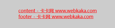 我們看到,內層定義的類.footer不起作用了。但同時又看到,另一個內層.content的div,其CSS的定義是有效的。為什么會出現這個情況呢?寫法的差異!
