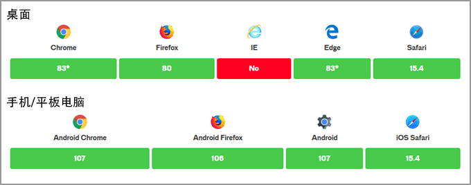 }就目前而言,支持的瀏覽器如下(數字表示支持瀏覽器該版本及更高版本):