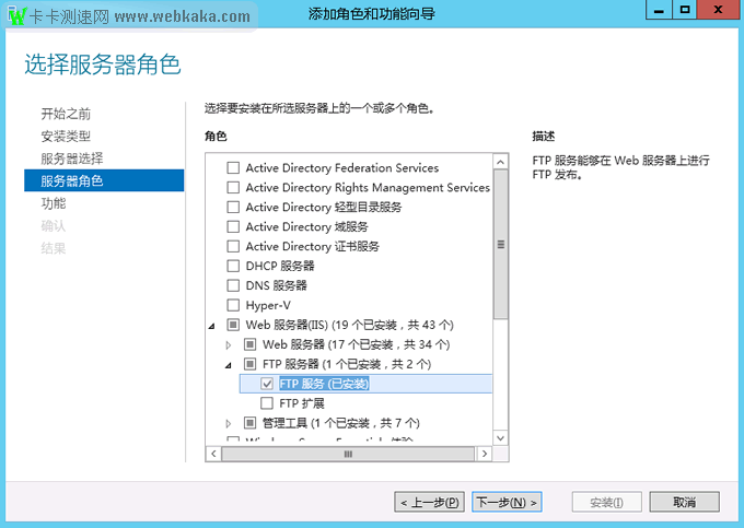 1、添加FTP角色服務,不用勾選“FTP擴展”,勾選也可以。