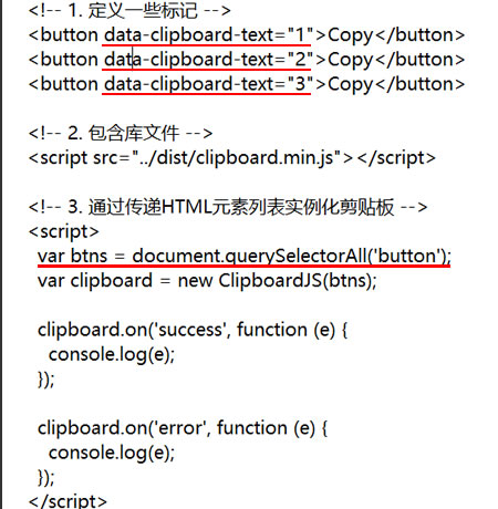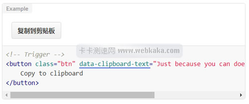 事實是,你甚至不需要另一個元素來復制其內(nèi)容。你可以在觸發(fā)器元素中包含一個data-clipboard-text屬性。