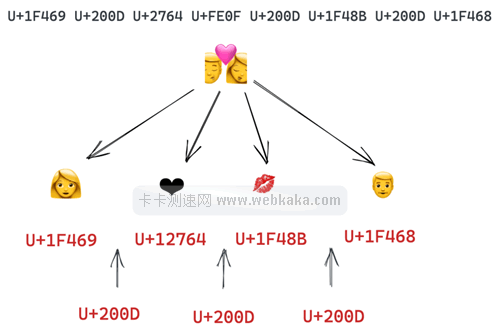 一種解決方案是直接在 Unicode 中添加一個表示一對的符號,但是這種解決方案占用了太多的 Unicode 資源。為了方便,人們發明了 Emoji ZWJ(ZERO WIDTH JOINER) 序列,它允許我們將不同的 emoji 組合在一起。