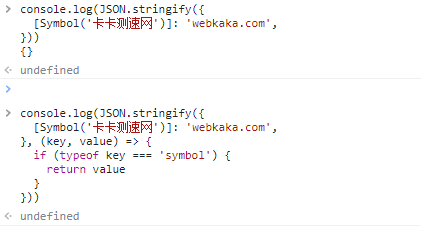 3、所有Symbol帶鍵的屬性都將被完全忽略,即使在使用replacer函數(shù)時也是如此。