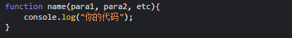 一個函數被分解成幾個基本元素。通過一對括號傳遞的名稱、參數,以及一段代碼。
