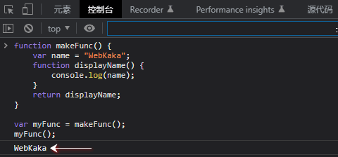 原因在于,JavaScript 中的函數(shù)會形成了閉包。 閉包是由函數(shù)以及聲明該函數(shù)的詞法環(huán)境組合而成的。該環(huán)境包含了這個閉包創(chuàng)建時作用域內(nèi)的任何局部變量。在本例子中,myFunc 是執(zhí)行 makeFunc 時創(chuàng)建的 displayName 函數(shù)實例的引用。displayName 的實例維持了一個對它的詞法環(huán)境(變量 name 存在于其中)的引用。因此,當 myFunc 被調(diào)用時,變量 name 仍然可用,其值 WebKaka 就被傳遞到log中。