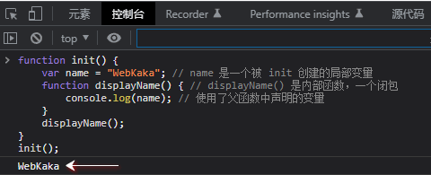 var name = "WebKaka"; // name 是一個被 init 創(chuàng)建的局部變量