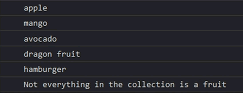 console.log('Not everything in the collection is a fruit');
