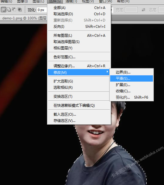 當你用工具摳出圖之后,先設置一下 平滑 ,再 Ctrl+C 把人物圖復制粘貼到其他地方,即是文章《很簡單!PS智能摳出人物圖并描上白邊》第4步前要做的一個操作。上面效果圖的中間人物圖平滑值為5,右邊人物圖平滑值為10。