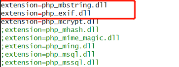 后來我終于找對了正確的方法,就是打開這兩個擴展之后,還有把extension=php_mbstring.dll移到extension=php_exif.dll的前面,最終顯示如下: