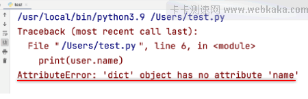 print(user.name);就返回了標(biāo)題寫的錯(cuò)誤了:AttributeError: 'dict' object has no attribute 'name'。