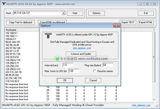 獲得的結(jié)果可以以 HTML 或 .txt 格式導(dǎo)出,雖然跟蹤路線有時會很復(fù)雜,但使用此應(yīng)用程序,你只需在選項(xiàng)菜單中配置 ping 的大小,然后按下開始按鈕。