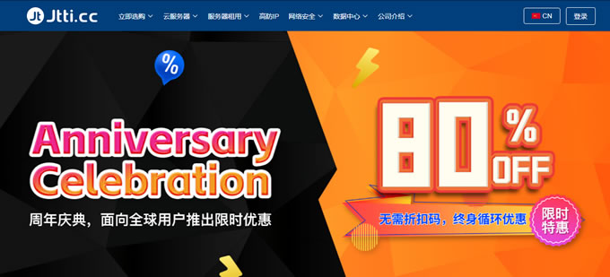 Jtti.cc發布了2026年周年慶促銷活動,全場限時優惠80% off,中國香港/美國/新加坡不限流量CN2云服務器年付低至$24.62/年。中國香港/日本輕量云服務器獨享200M優化帶寬,年付低至$35/年,全年最大折扣力度,每個用戶限購1臺,優惠不容錯過!!!